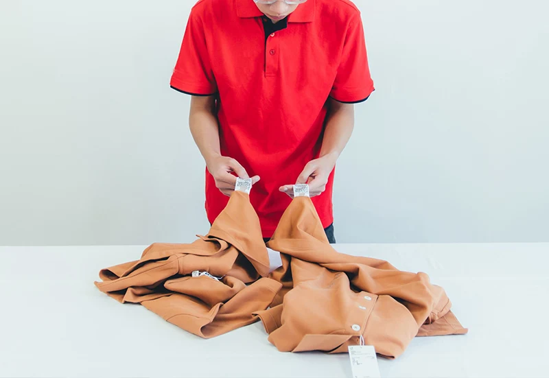 Efter strykning kvalitetskontrolleras plaggen noggrant och packad.