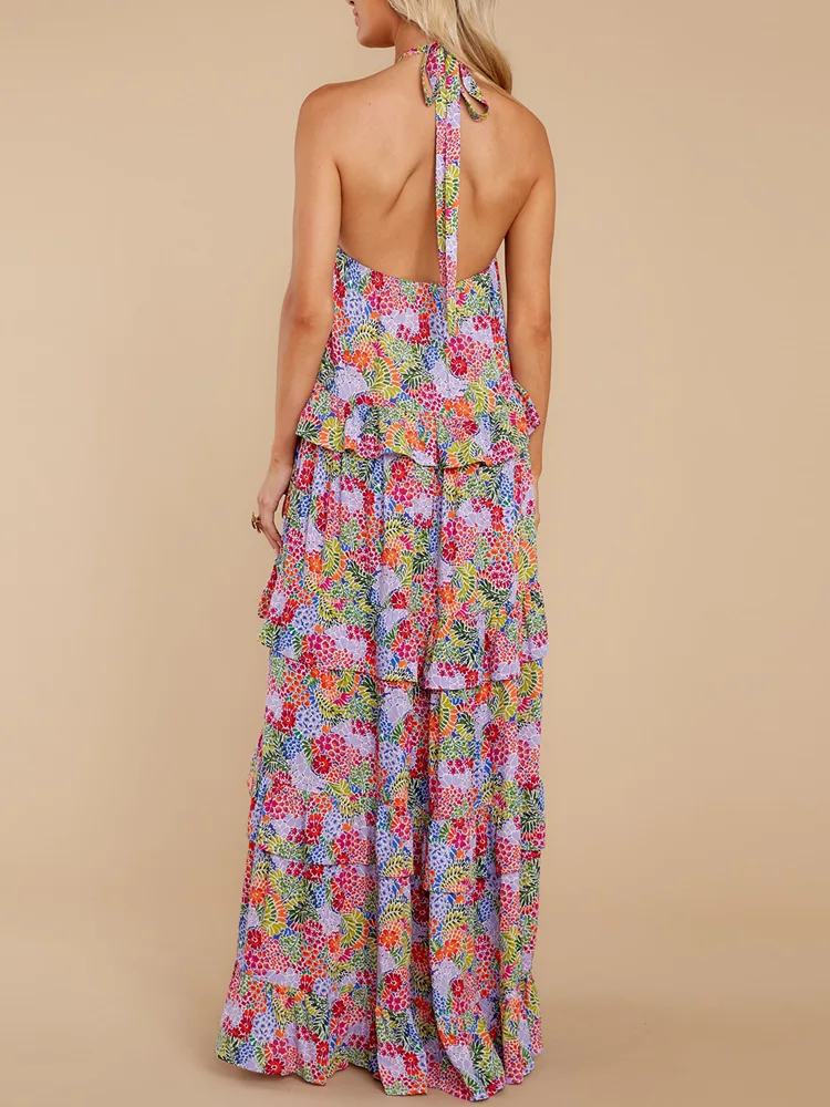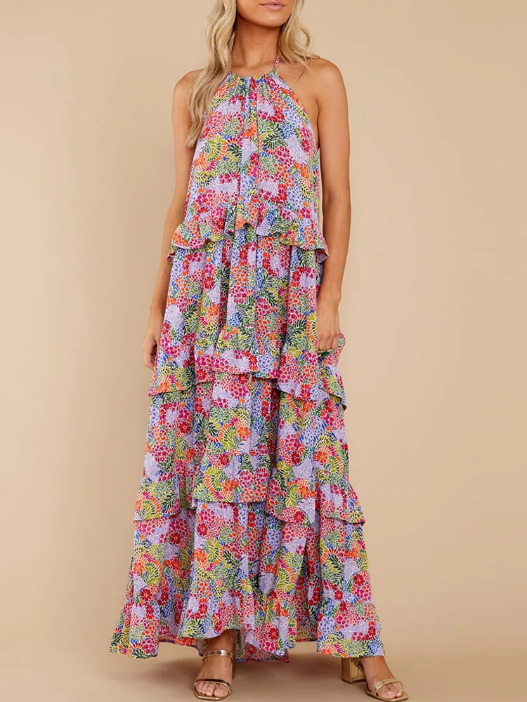 Hot Tags: Kvinnor Elegant blommig tryck bomull maxi klänning